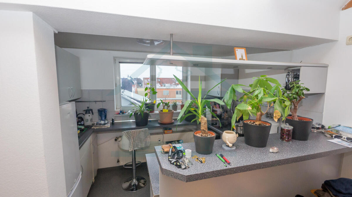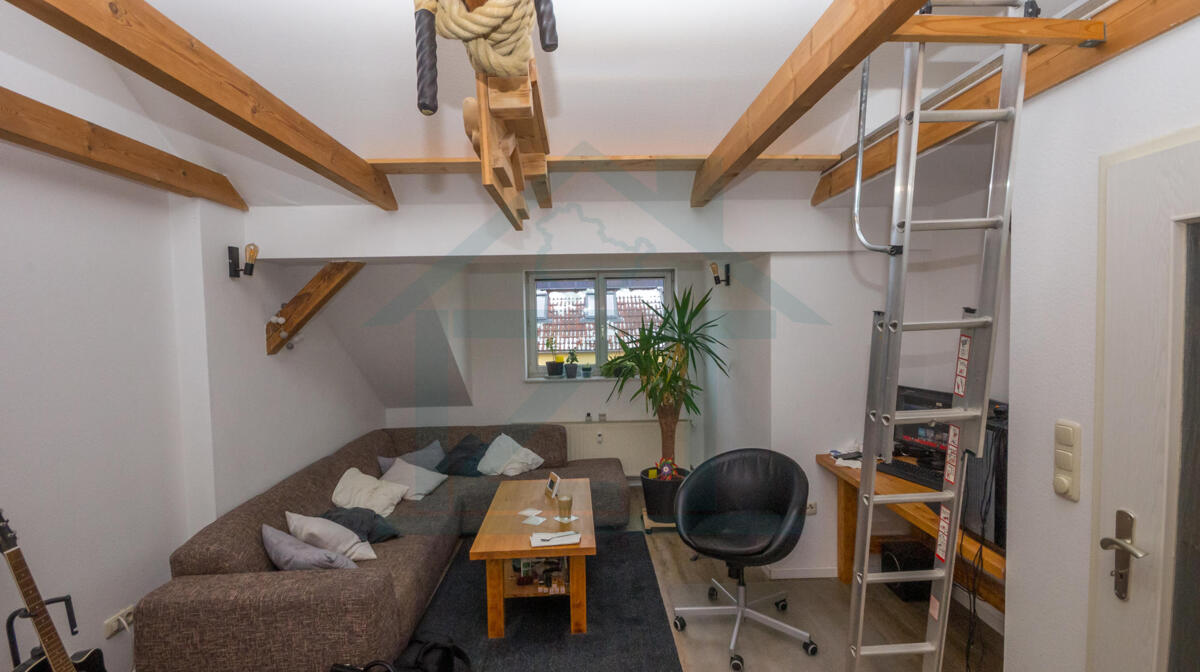 Sehr gemütlich ist auch die Single Wohnung mit offener Wohnküche im Dachgeschoss.