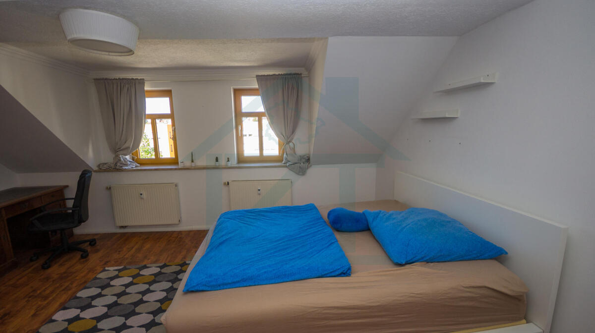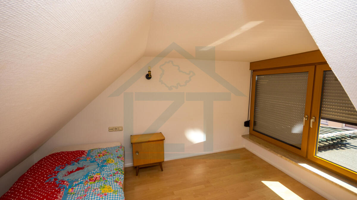 Das Dachgeschoss wurde gemütlich ausgebaut und beherbergt zwei Schlafzimmer. Von einem der Schlafzimmer führt eine Holztreppe in den ebenfalls ausgebauten Spitzboden, der als weiteres Schlafzimmer dient.
