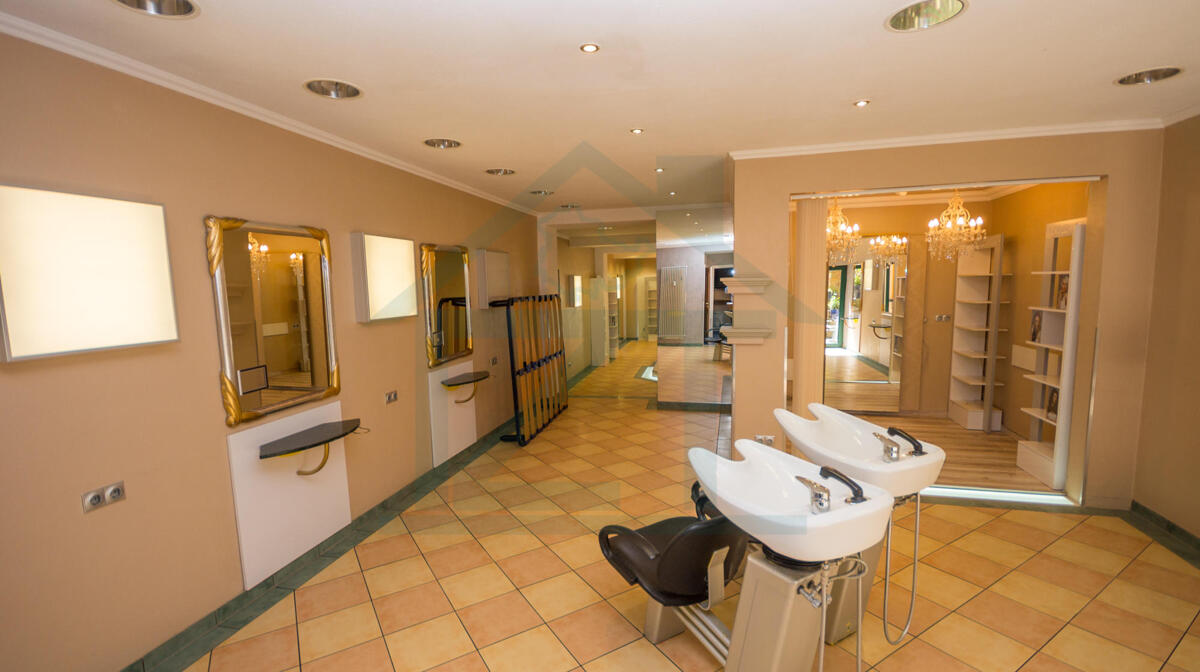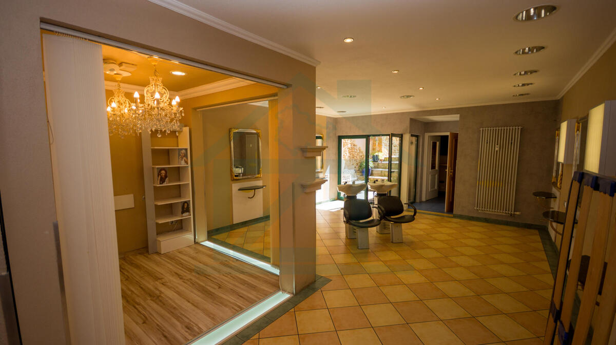 Der frühere Friseursalon im Erdgeschoss, der über einen separaten Eingang mit Schaufenster zugänglich ist, wurde sorgfältig für die Nutzung als Friseur- und Kosmetikgeschäft umgebaut und steht derzeit leer.Von hier aus gelangen Sie über den rückwärtigen Ausgang in den liebevoll gestalteten Innenhof und zu einem privaten Gartenanteil.