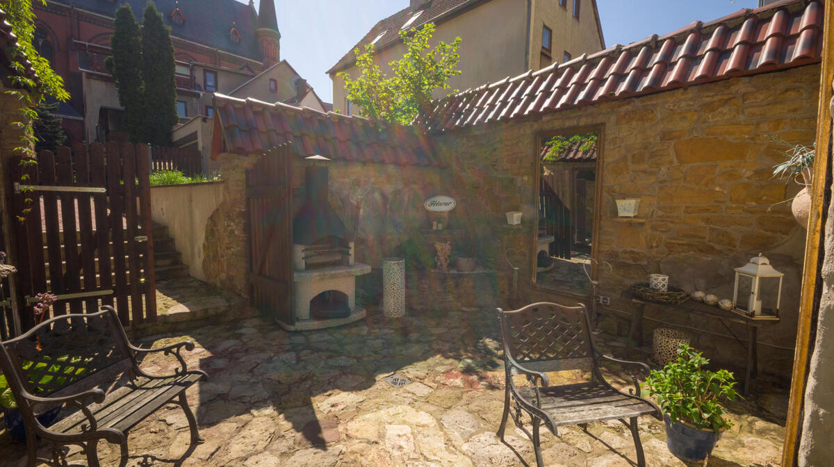 Im Jahr 2000 wurde die gesamte Immobilie im Zuge des eingeschossigen Anbaus umfassend saniert. Dabei wurden das Dach und die Fassade erneuert und mit einer Dämmung versehen. Auch die Heizungs-, Elektro- und Sanitärinstallationen stammen aus dieser Zeit.Der kleine Innenhof und der angrenzende Gartenanteil sind sehr liebevoll und mediterran gestaltet und bieten einen schönen Blick auf die Lutherkirche.