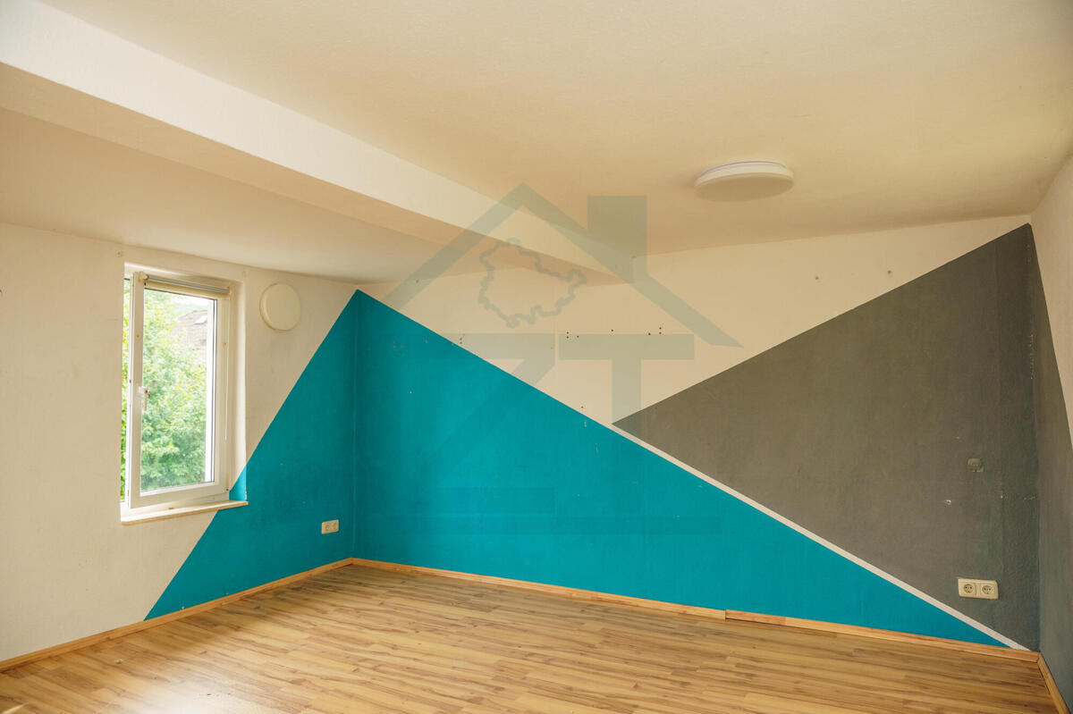 Im Obergeschoss stehen Ihnen drei weitere Zimmer zur Verfügung: ein Schlafzimmer, ein Kinder- oder Arbeitszimmer sowie ein besonders großes weiteres Zimmer, das flexibel als Kinder- oder Elternschlafzimmer genutzt werden kann. Ein praktischer Einbauschrank im Flur schafft zusätzlichen Stauraum.