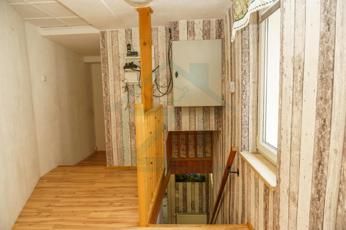 Beim Betreten des Hauses gelangen Sie in den Eingangsbereich mit Flur. Von hier aus erreichen Sie die Küche, die dank eines großen Fensters hell und freundlich wirkt und genügend Platz für eine gemütliche Sitzecke bietet. Angrenzend an die Küche befindet sich das Wohnzimmer. Das großzügige Badezimmer im Erdgeschoss ist mit Badewanne, Dusche und WC ausgestattet und bietet viel Komfort. Zusätzlich gibt es einen separaten Raum für die Heizungsanlage (Pelletheizung, Baujahr 2022).