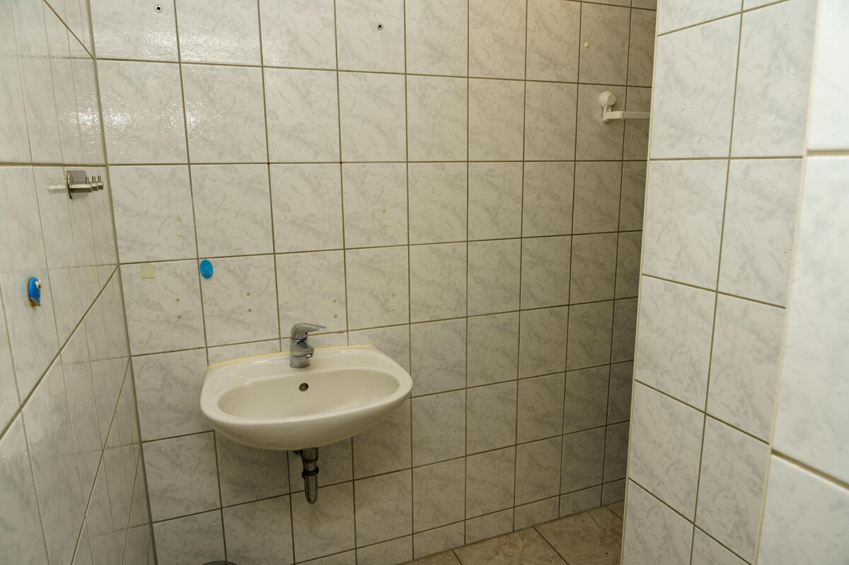 Über das Schlafzimmer betritt man das innen liegende Bad mit Dusche.