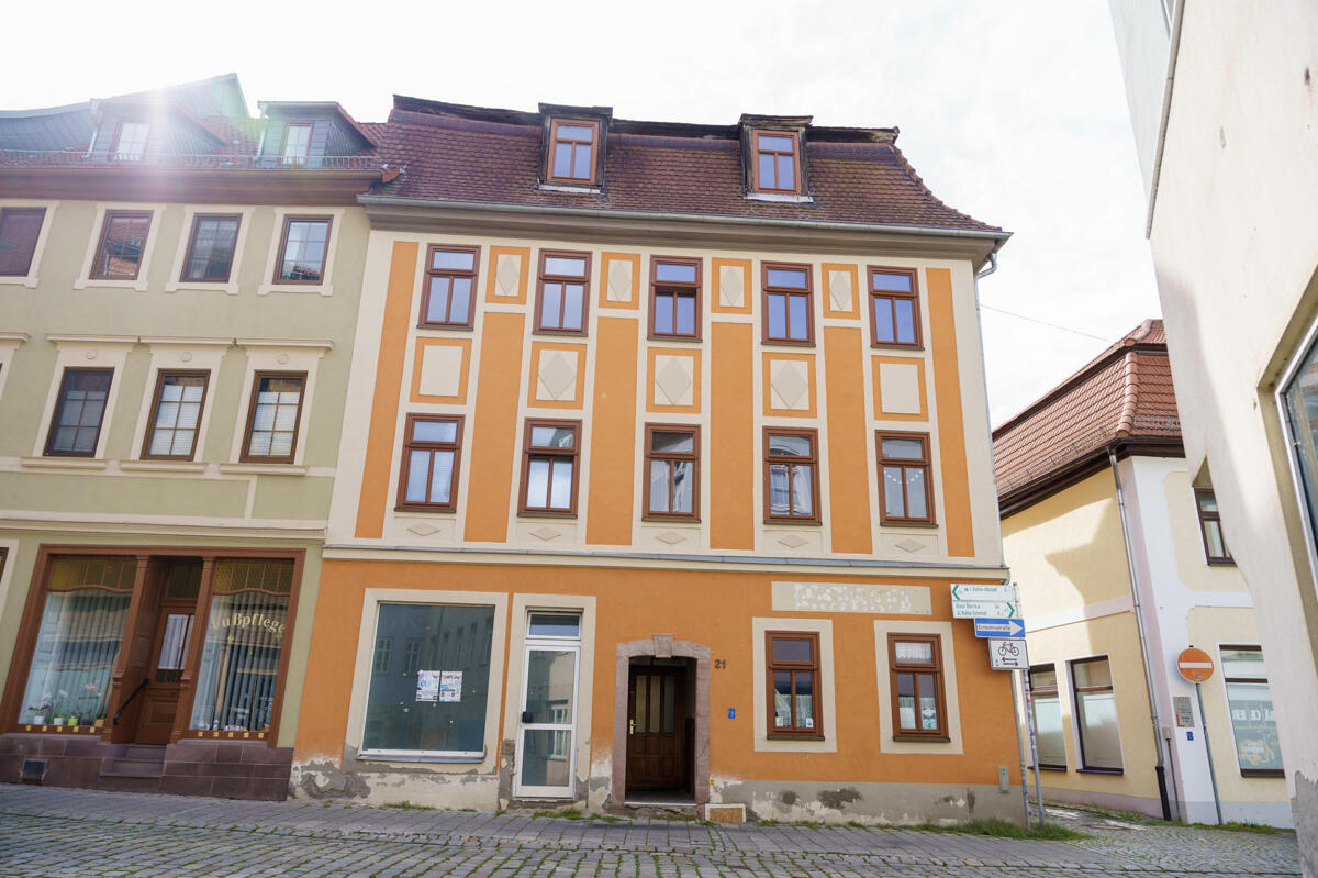 Die angebotene Wohnung liegt in unmittelbarer Nähe zum historischen Markt von Kahla. In fußläufiger Entfernung befinden sich Nahversorger, Ärzte, Apotheken und Anbindungen an den ÖPNV.