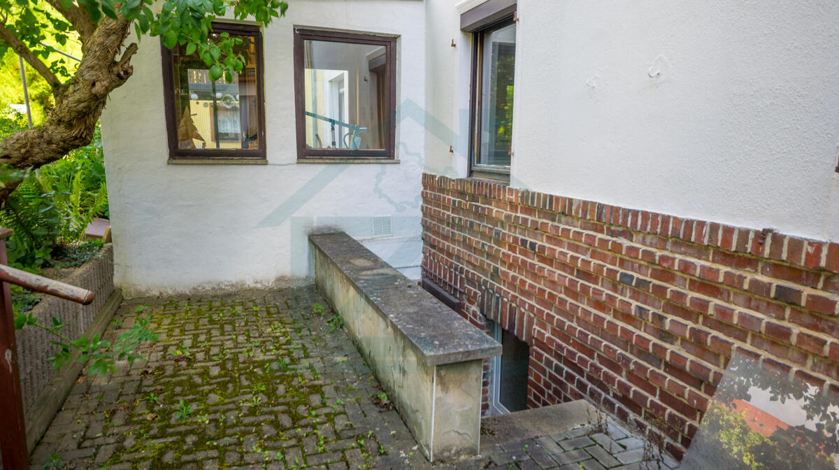 Ein Kellerraum bietet Zugang zu einem hübschen, rückwärtigen Gartenbereich mit Terrasse.