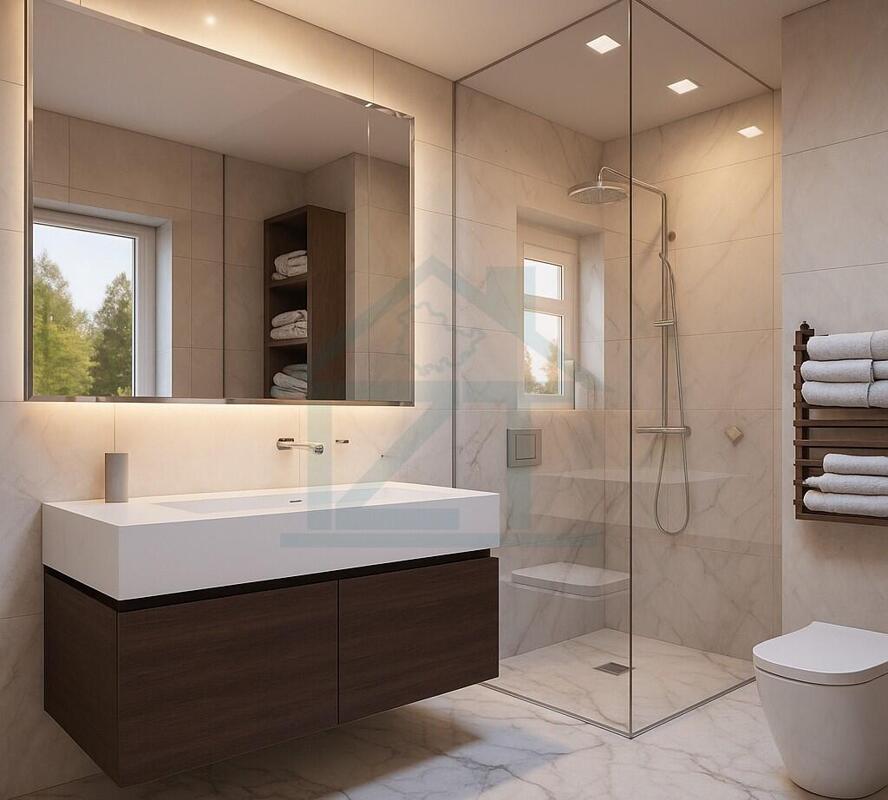 Ein Bad, ein separates WC und ein praktischer Hausanschlussraum.
